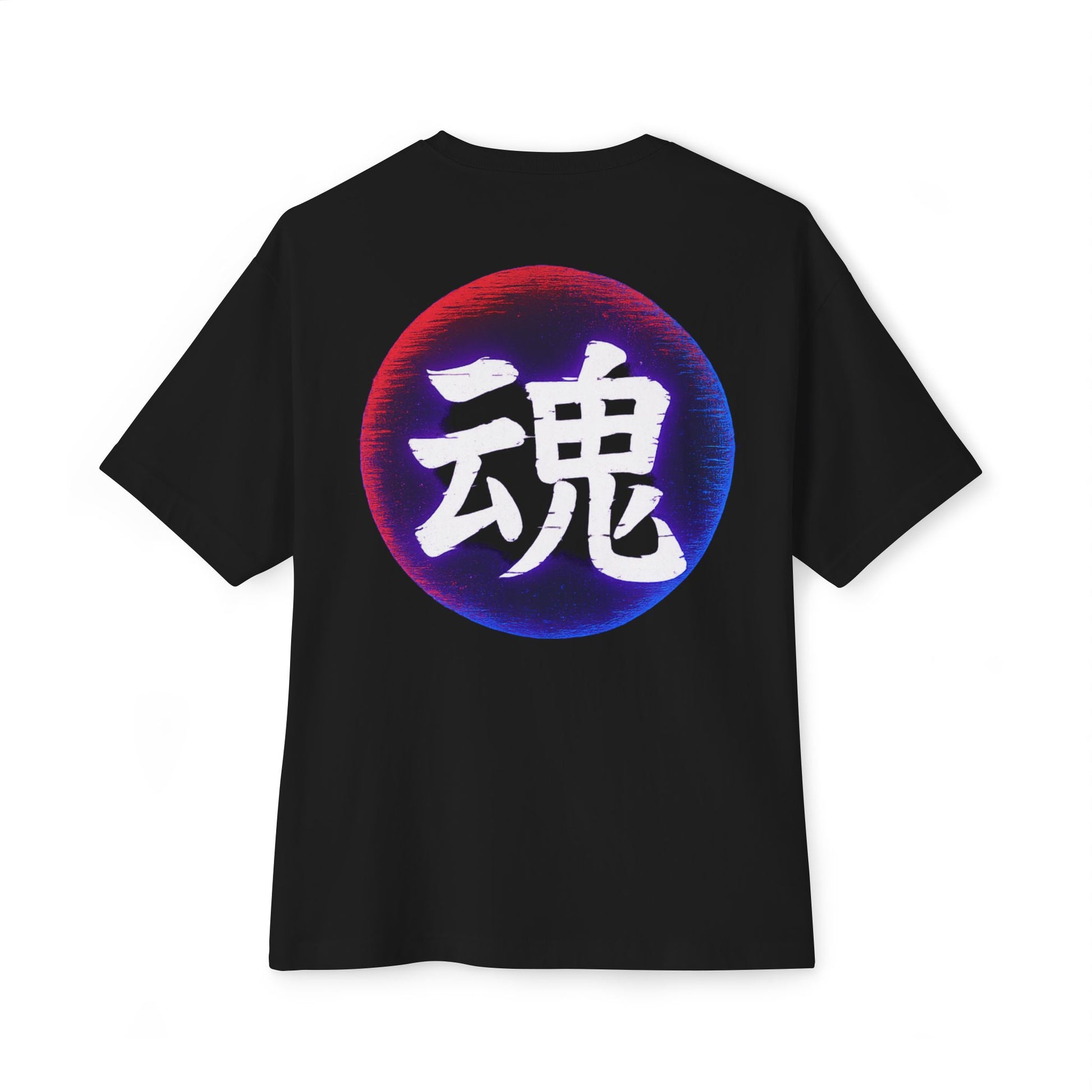 Your essence in glitch. Kanji 魂 (soul) fused with a shattered red sun and purple neon glow.